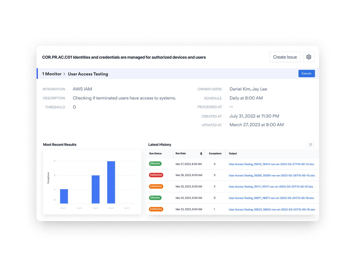 Leverage integrations, intelligent workflows, and scheduling to simplify evidence collection, gap analysis, and issue remediation. Use common controls and intuitive stakeholder views to simplify ongoing compliance, reduce audit fatigue, and enable cross-team collaboration.