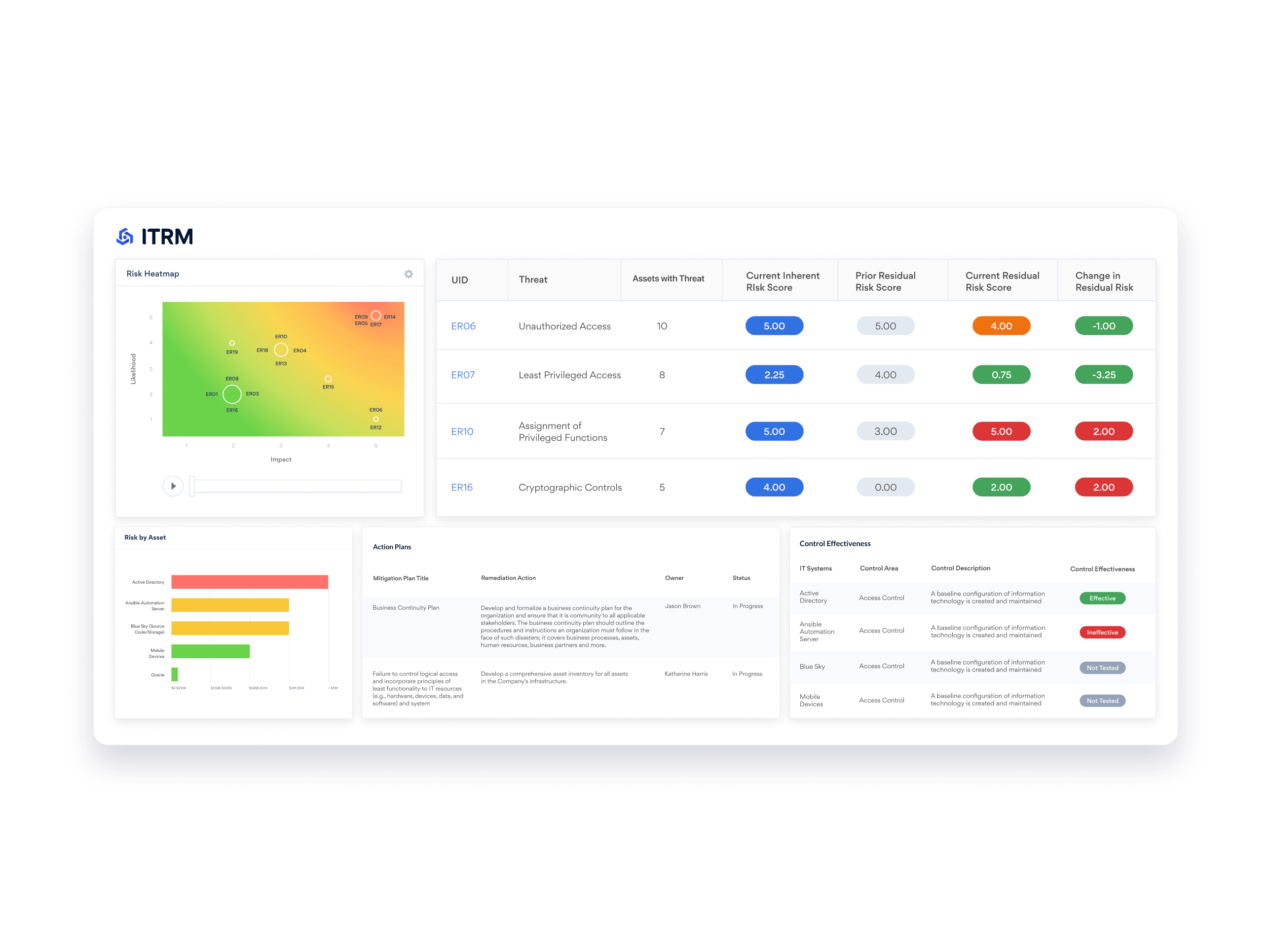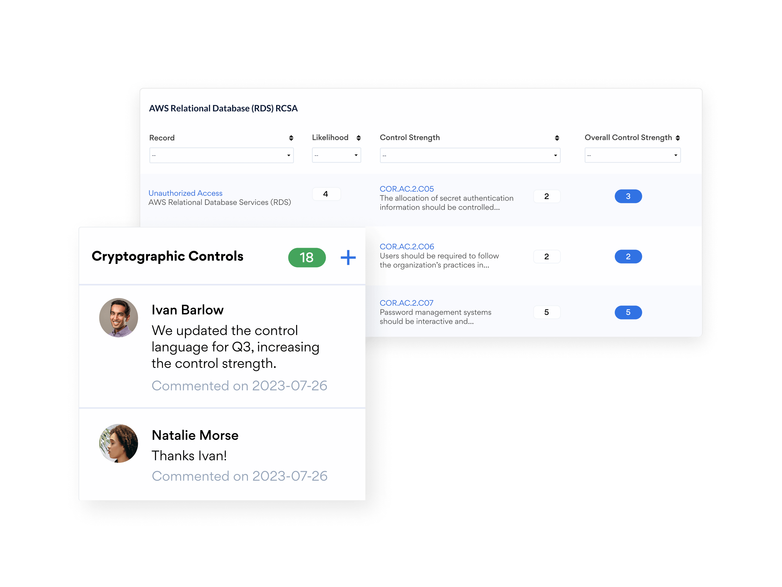 Identify emerging threats and reassess known risks through ongoing assessments by automating risk scoring and taking a data-driven approach to IT risk management. Monitor control strength to achieve a real-time view of your security posture.