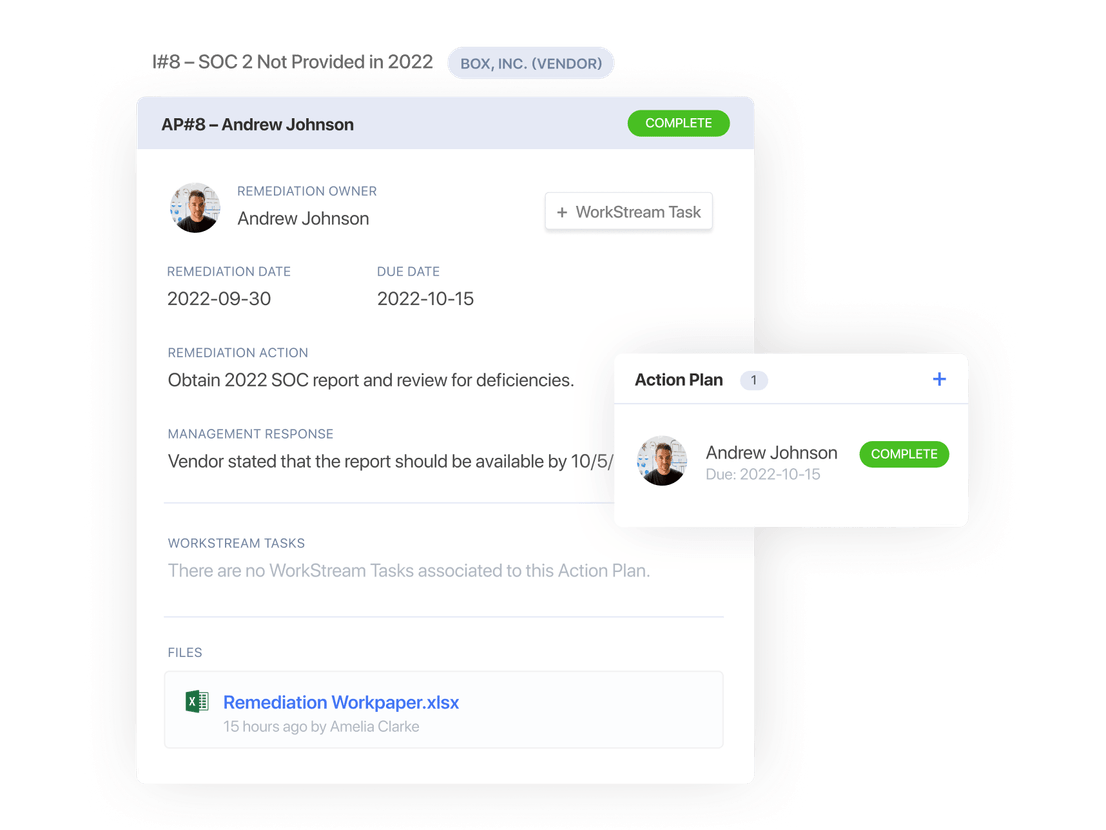 Assign mitigation owners, view the status of action plans, and send reminders from a centralized dashboard. Gain visibility into top third-party risks so they can be proactively remediated before they impact your organization.