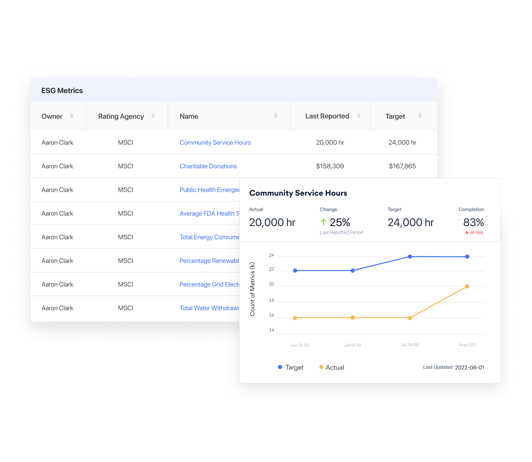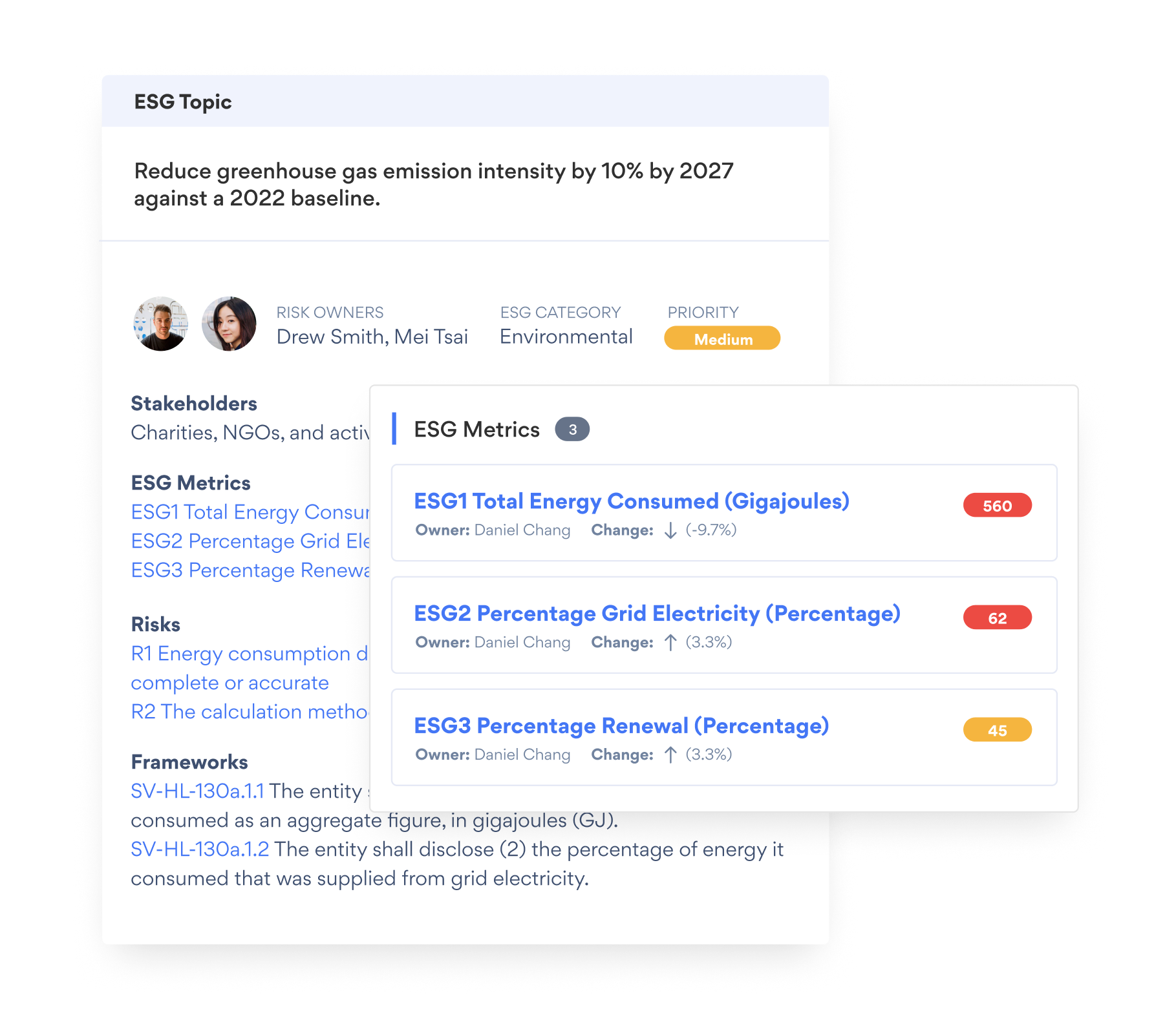 Aggregate ESG topics and metrics to align with frameworks and make stakeholder reporting easier.